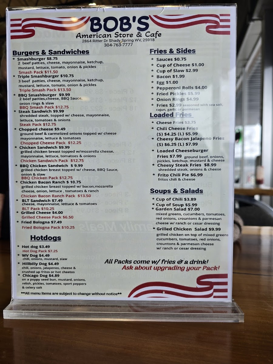 Welcome to BOBS American Store & Cafe, a delightful gem tucked away at 2864 Ritter Dr, Shady Spring, WV. This charming cafe stands out in the bustling community with an inviting atmosphere that blends Americana with a local touch, making it an ideal spot for families, friends, and anyone looking to indulge in comforting food.